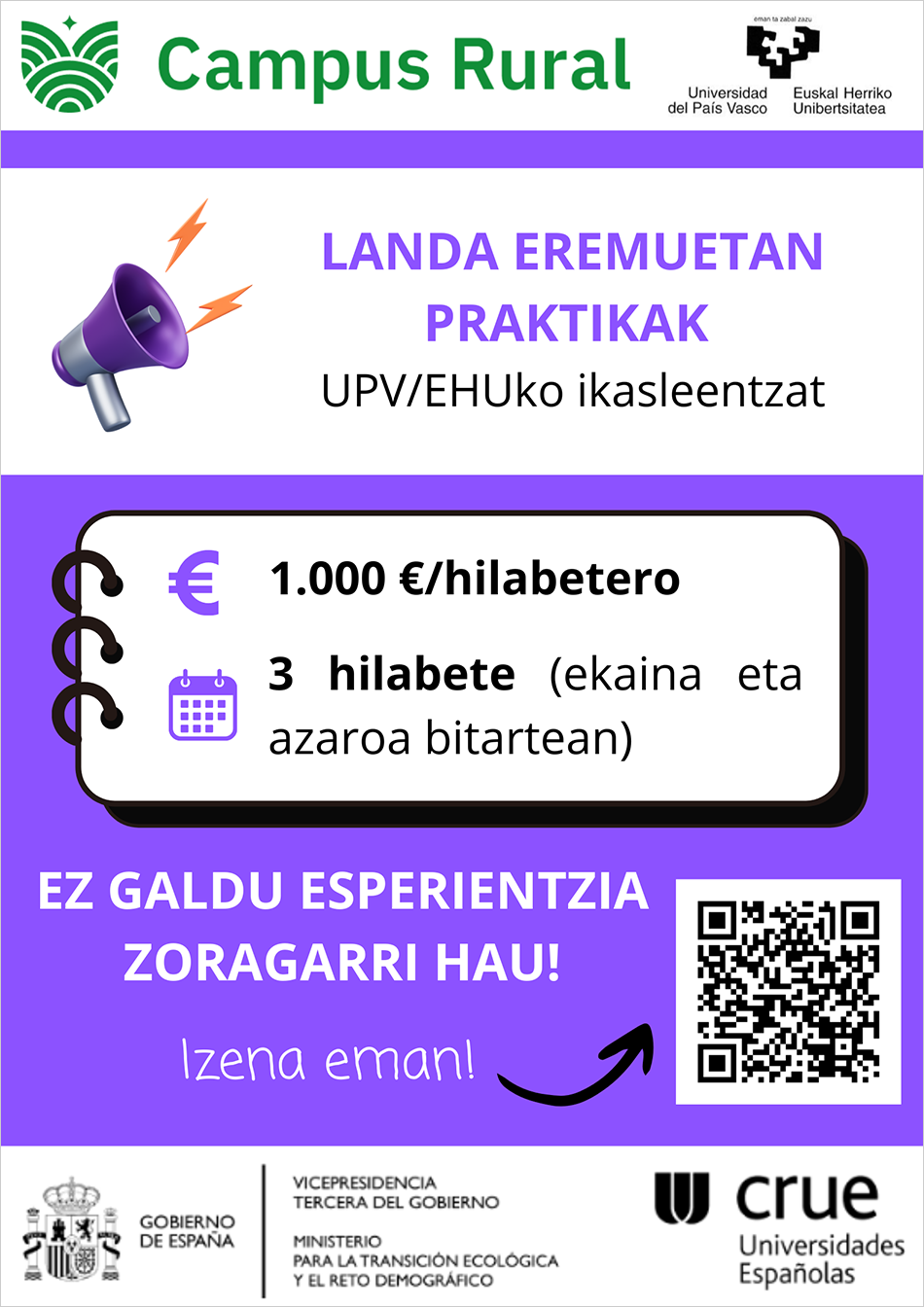 UPV/EHUko ikasle gisa indarrean dagoen matrikula izatea praktika bukatu arte.