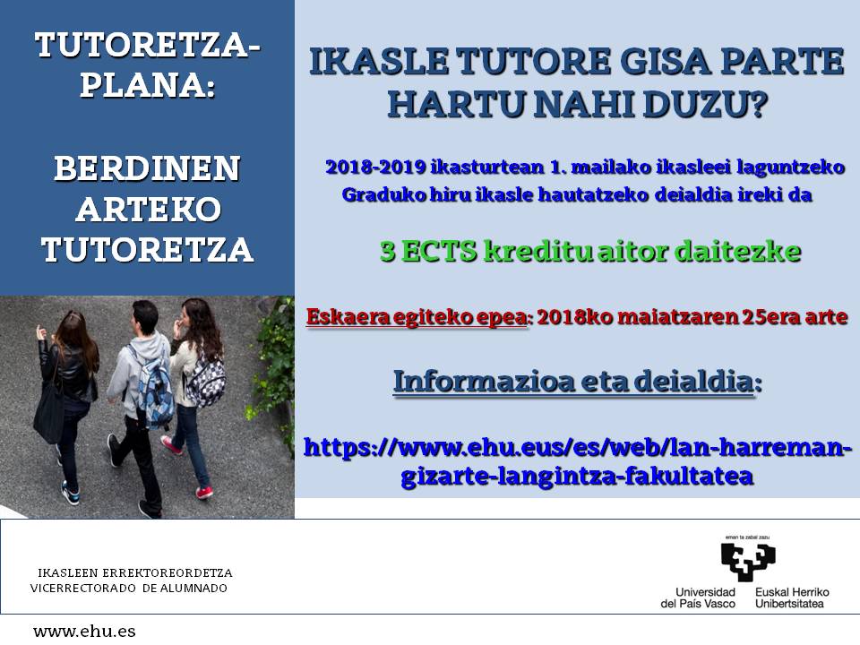 2018-2019 ikasturtean 1. mailako ikasleei laguntzeko Graduko hiru ikasle hautatzeko deialdia ireki da