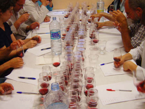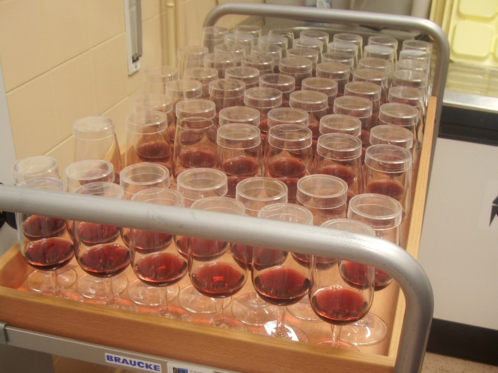 Ardoaren itxuraren ebaluazioa zentzumenen bidezko ebaluaziorako gelaren kabina batean -