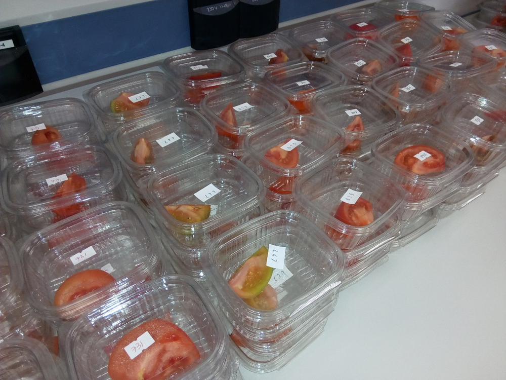 Tomate lagin baten itxuraren zentzumenen bidezko ebaluazioa pantailan -