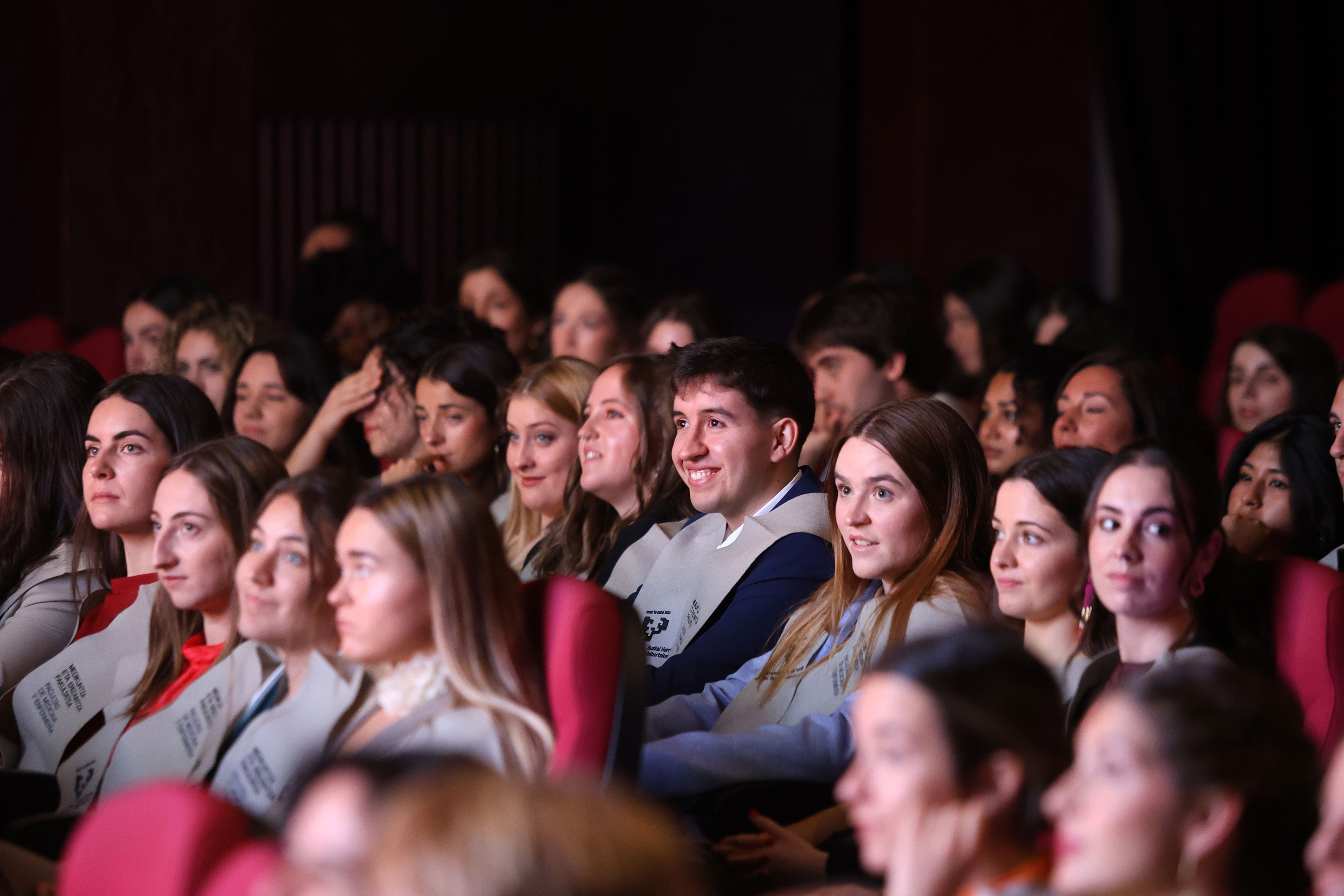 Ikasleen partez, lehenik eta behin, June Esnal eta Nora Ituartek hartu zuten hitza, euskara taldearen izenean. Ondoren, Ivan Almenak hitz egin zuen gaztelerazko taldearen izenean. Haien diskurtsoek, tonu freskoa eta umore apur batekin, lau urte hauetan izandako gorabeherak islatu zituzten, jasotako laguntza eta prestakuntza eskertu zuten, baita komunitatearen osasunari eta ongizateari modu esanguratsuan laguntzeko hartutako konpromisoa ere.