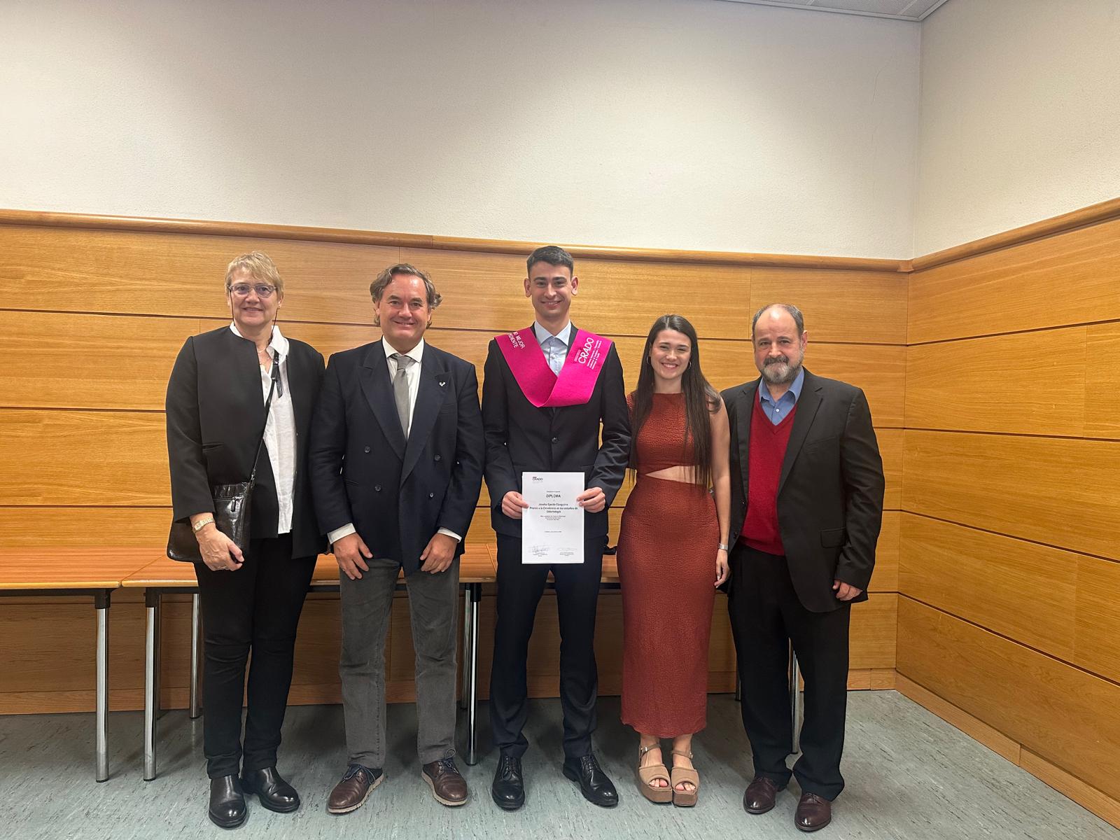 Joseba Epelde Eizaguirre Odontologiako ikaslea saritu dute joan den urriaren 22an Madrilgo Unibertsitate Complutenseko Odontologia Fakultatean ospatutako Odontologia ikasketen Bikaintasun sarien XII. Odontologiako Akademia Arduradunen eta Dekanoen Konferentziak (CRADO) antolatu eta sustatutako ekitaldiaren helburua da Odontologiako ikasleek 2023/2024 ikasturtearen promozioko espediente akademiko onena lortu dutela aitortzea. Guztira, Espainia osoko 23 ikaslek jaso dute bikaintasun akademikoaren saria: 15 emakumek eta 8 gizonek.