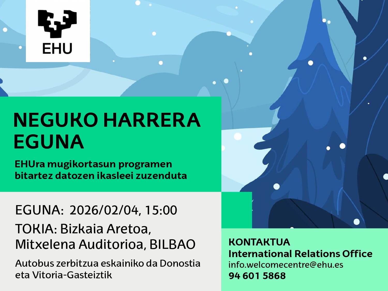 EHUko nazioarteko ikasle guztientzat neguko ongietorri-ekitaldia, Nazioarteko Harremanen Bulegoko International Welcome Centreak antolatuta.