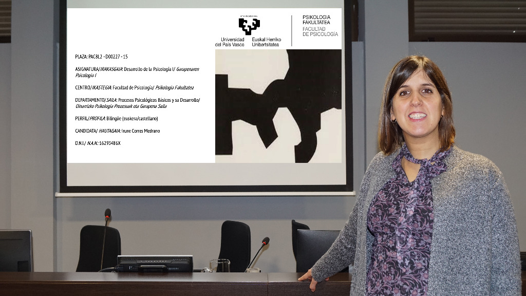 Irune Corres Medranok Irakasle Atxiki plaza lortu du Lehenengo argitaratze data: 2023/01/18 Facebook bidez partekatu - (Beste leiho bat zabalduko du) Bluesky bidez partekatu - (Beste leiho bat zabalduko du) Linkedin bidez partekatu - (Beste leiho bat zabalduko du) Whatsapp bidez partekatu - (Beste leiho bat zabalduko du) Telegram bidez partekatu - (Beste leiho bat zabalduko du) Bidali mezu elektroniko bidez - (Beste leiho bat zabalduko du) Esteka kopiatu - (Beste leiho bat zabalduko du) Atzo, Irune Corres Medrano gure lankideak Irakasle Atxiki plaza lortu zuen Oinarrizko Psikologikoen eta bere Garapenaren Sailean. Zorionak!
