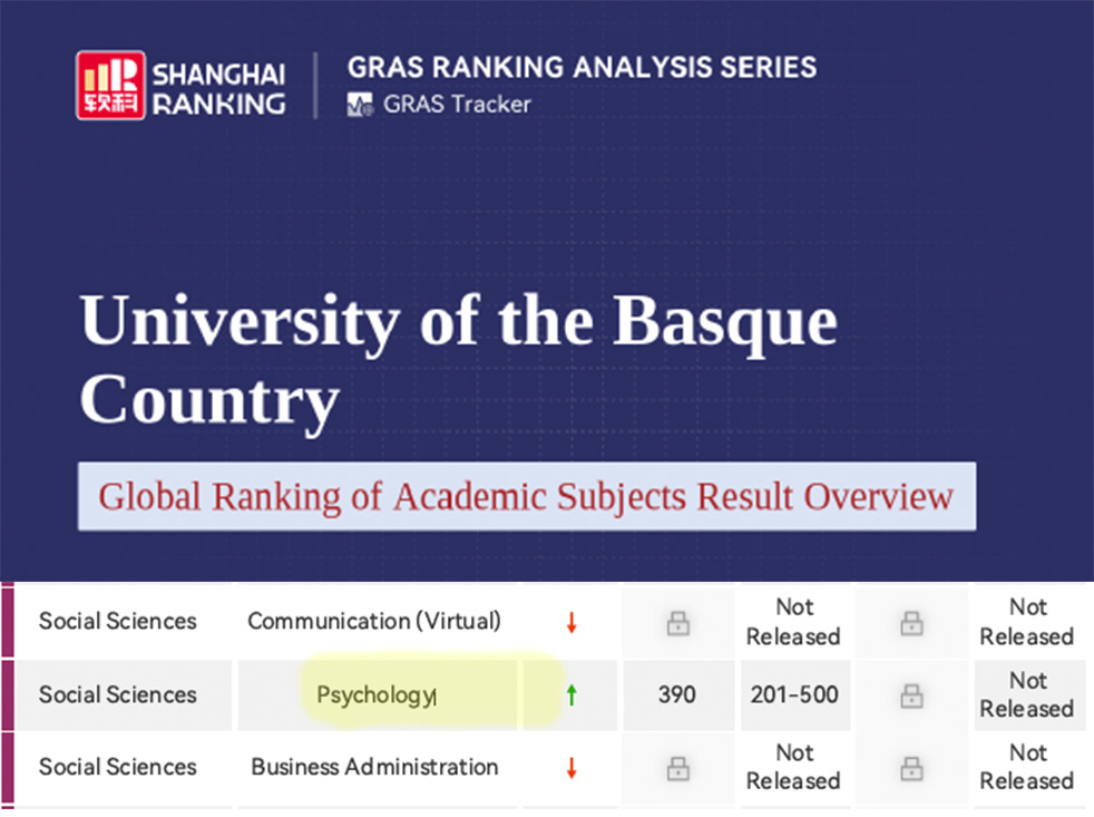 Zehazki, EHUko Psikologiako Gradua 390. postuan dago sailkapenean.