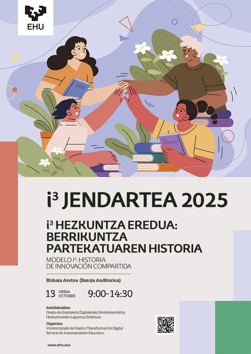 EHUk i3 jendartea 2025: “i3 hezkuntza eredua: berrikuntza partekatuaren historia” antolatu du, 2025eko urriaren 13an, Bizkaia Aretoan (Bilbo), goizeko 9:00etatik 14:30etara.