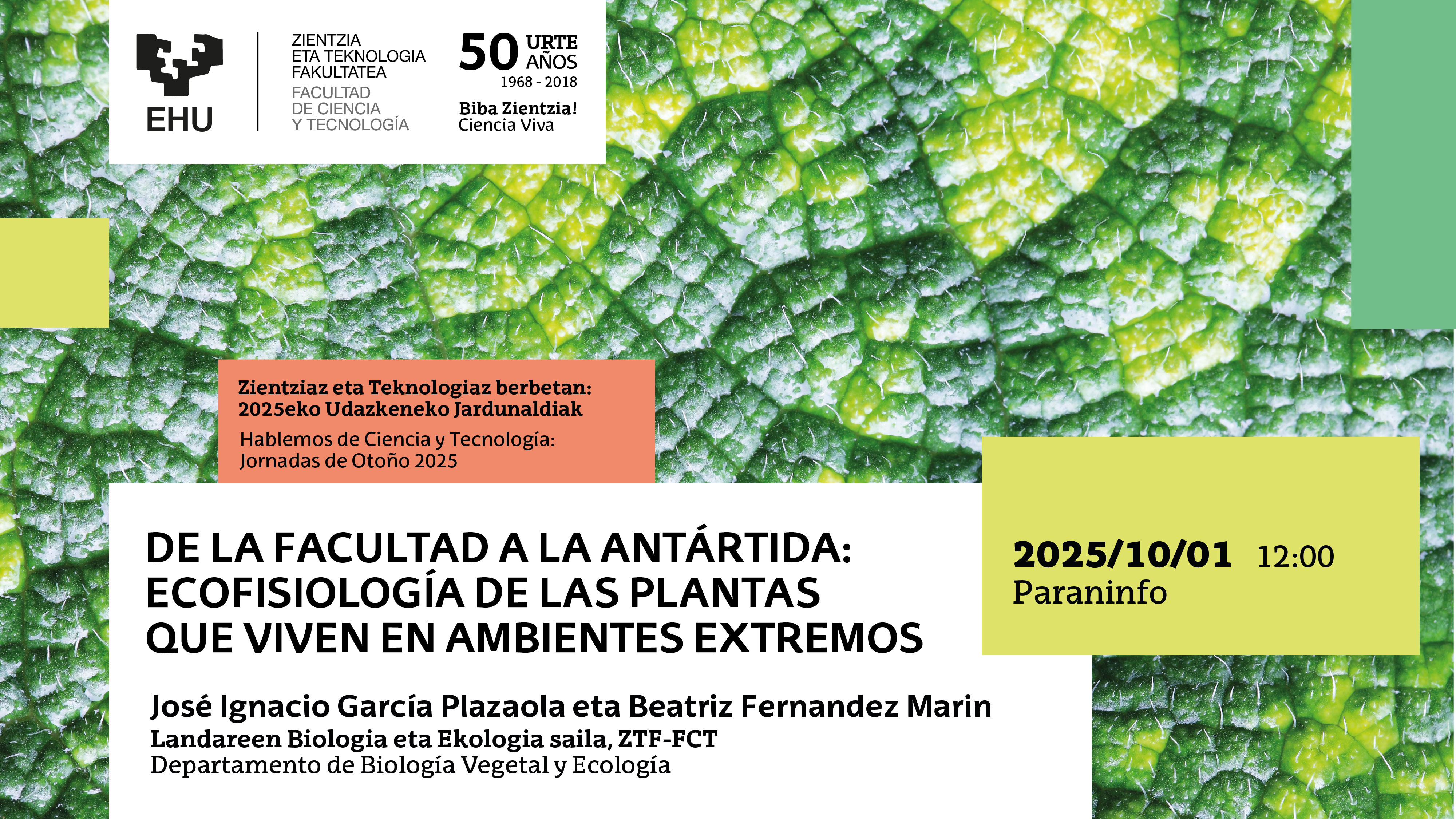 “De la Facultad a la Antártida: ecofisiología de las plantas que viven en ambientes extremos”. Dr. José Ignacio García Plazaola eta Beatriz Fernandez Marin
