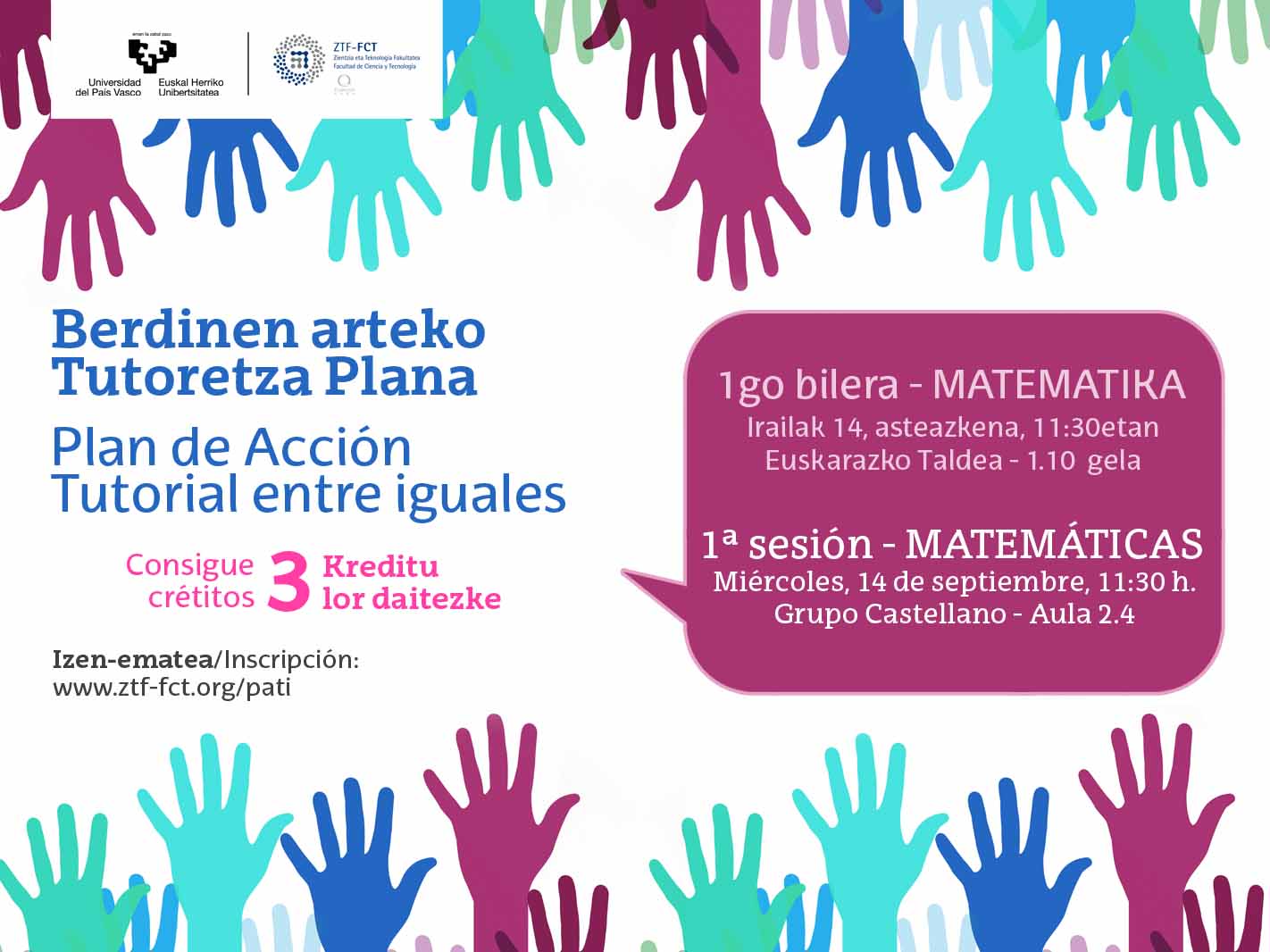 Matematika: Gaztelaniazko taldea 2.4. gela. Euskarazko taldea 1.10 gela.