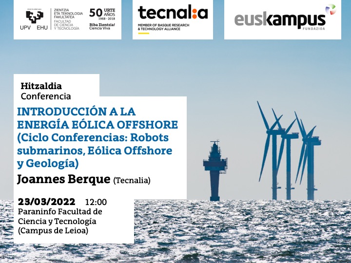 - Charla: Joannes Berque (Tecnalia). “Introducción a La Energía Eólica Offshore (Ciclo Conferencias: Robots submarinos, Eólica Offshore y Geología)” (23/03/2022)