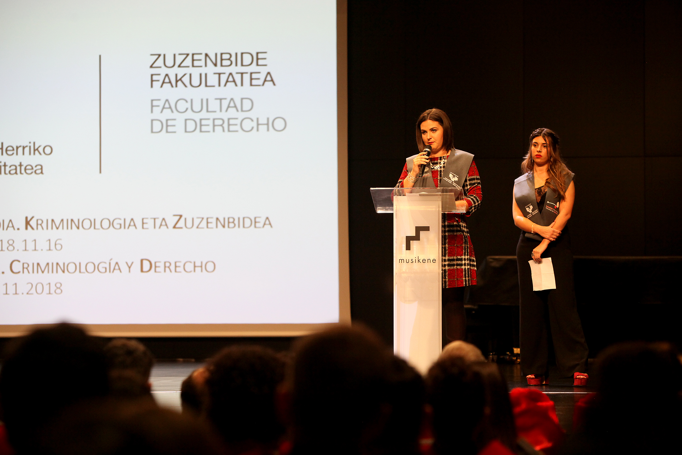 Argazki guztiak eta bideo deskargatu Diploma banaketa Donostian (2018): Kriminologiako Gradua eta Zuzenbideko Gradua (Beste leiho bat zabalduko du)Argazkiak (zip ,23,95 Mb) Diploma banaketaren ekitaldiaren bideoa