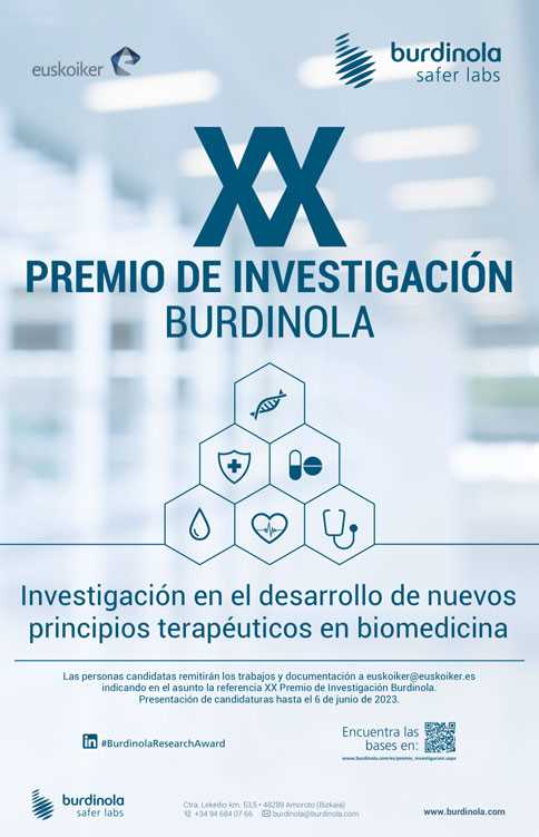 Aurtengo ediziorako aukeratutako gaia Biomedikuntzan printzipio terapeutiko berriak garatzeko ikerketen eremuari buruzkoa da. Hautagaitzen aurkezpena 2023.eko ekainaren 6an amaituko da eta irailaren 30a baino lehen jakingo da epaimahaiaren erabakia Burdinola Ikerketaren XX. Sariaren irabazlearen izenarekin.