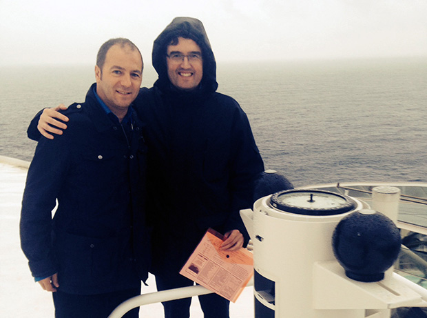 Ese ajuste periódico, aunque podría realizarlo el capitán, normalmente se encarga a especialistas externos por su complejidad. Aitor y Josu ofrecen ese servicio través de Euskoiker como actividad de transferencia de conocimiento entre universidad y empresa. Es un servicio que necesitan tanto buques pequeños como grandes. En mayo de este año, por ejemplo, con la colaboración de Jokin Alberdi, han compensado y certificado los compases magnéticos tanto del conocido “Txinbito” de Amarradores Puerto de Bilbao como del “Allure of the Seas” de la Royal Caribbean, el transatlántico más grande del mundo. Las maniobras necesarias para la compensación en este último se realizaron durante algo más de hora y media a su salida del Puerto de Barcelona con destino a Civitavecchia.