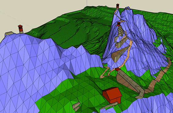 Otro de ellos consiste en la reconstrucción geométrica de los restos de una antigua fortificación que se encontraba sobre las Conchas de Haro. Los investigadores del Laboratorio han combinado la información de la cartografía oficial con un modelo de detalle de la zona de la muralla y alrededores. Además, con la ayuda del arqueólogo del proyecto, están tratando de visualizar cómo pudo haber sido esa fortificación, sobre qué zonas ofrecía visibilidad y cuál podría haber sido la función de la misma. Para ello, se intenta, a partir de los escasos restos disponibles, mostrar dónde podrían haberse situado los muros y las torres de vigilancia.