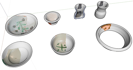 Actualmente, el Laboratorio se encuentra trabajando en múltiples proyectos. Uno de ellos, en colaboración con el Investigador Ikerbasque Javier García Iñañez, consiste en el modelado 3D de varios restos cerámicos de los siglos XVI-XVII. Además de registrar hasta el más mínimo detalle de los fragmentos disponibles, se reconstruye virtualmente la forma de la pieza completa para poder visualizar y dar sentido al fragmento.