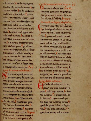 In nomine Patris et Filii et Spiritus Sancti, amen. / Ego, domna Legundia, spontanea mea vo- /9 -luntate, mulier de Petro Velaschez de / Riba. Ego donna Legundia mitto I<a> / vineam meam propr<i>am de meos parien- /12 -tes en Balle de Sagrero a Sancto Emiliano / et Sancto Felici, pro remedio anime mee. Confir- / -mo en conceio de Ponticurvo istam vineam /15 de Valle de Sagrero. Ego donna Legun- / -dia, Petro Velaschez, sediente en casa de / Martin Garciez el ferrero, en Ponticurvo. /18