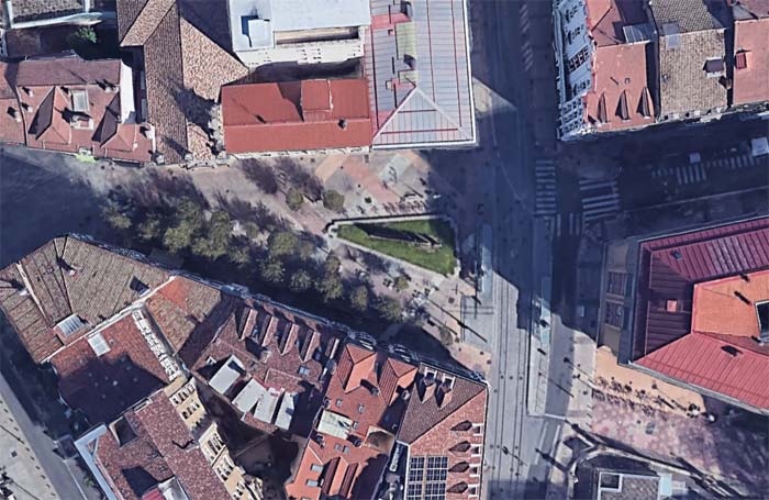 arkitektoak proposatutako iturriaren kokapena plazan. |