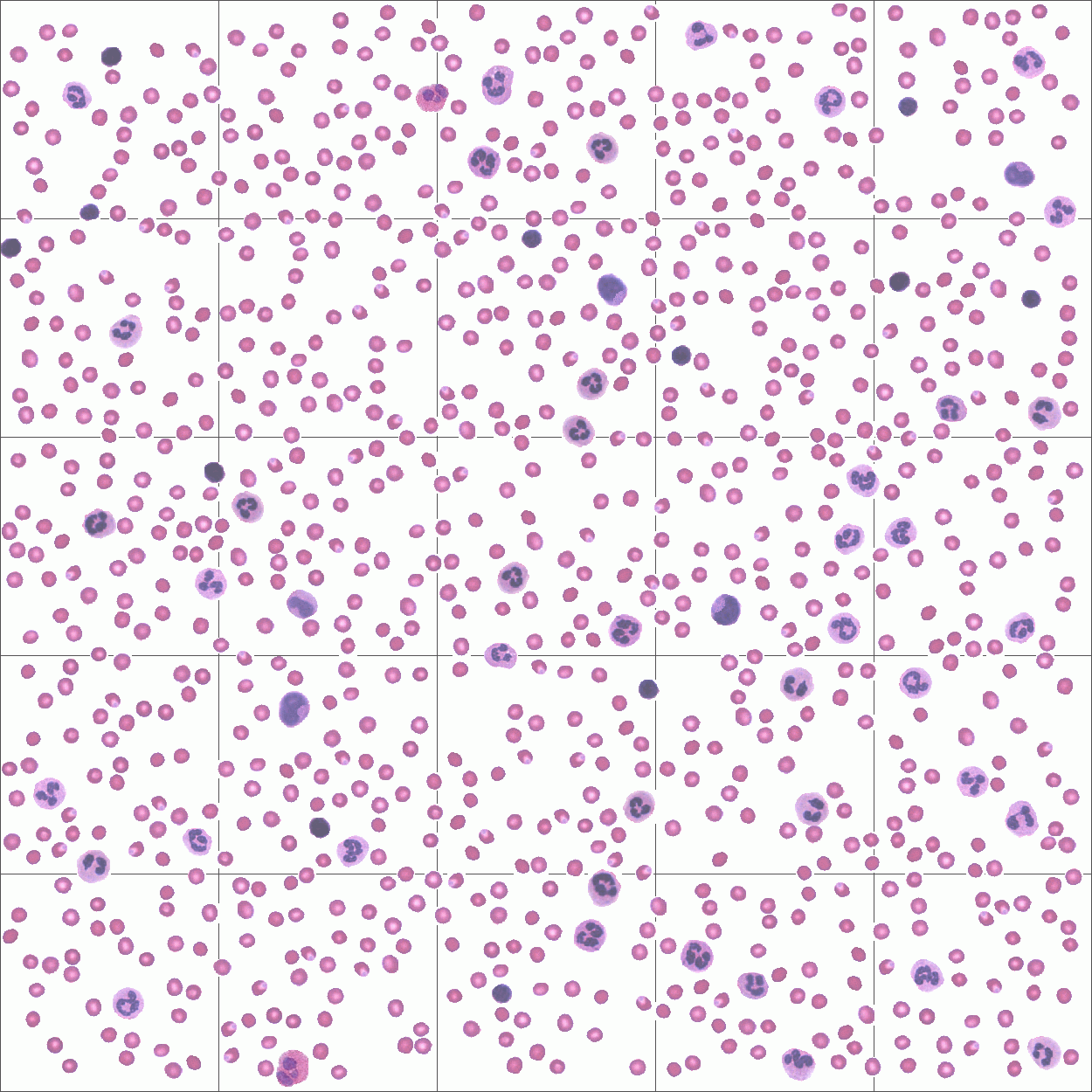 Leukozitoak edo odoleko zelula zuriak errez desberdintzen dira frotis batean zelula nukleodunak