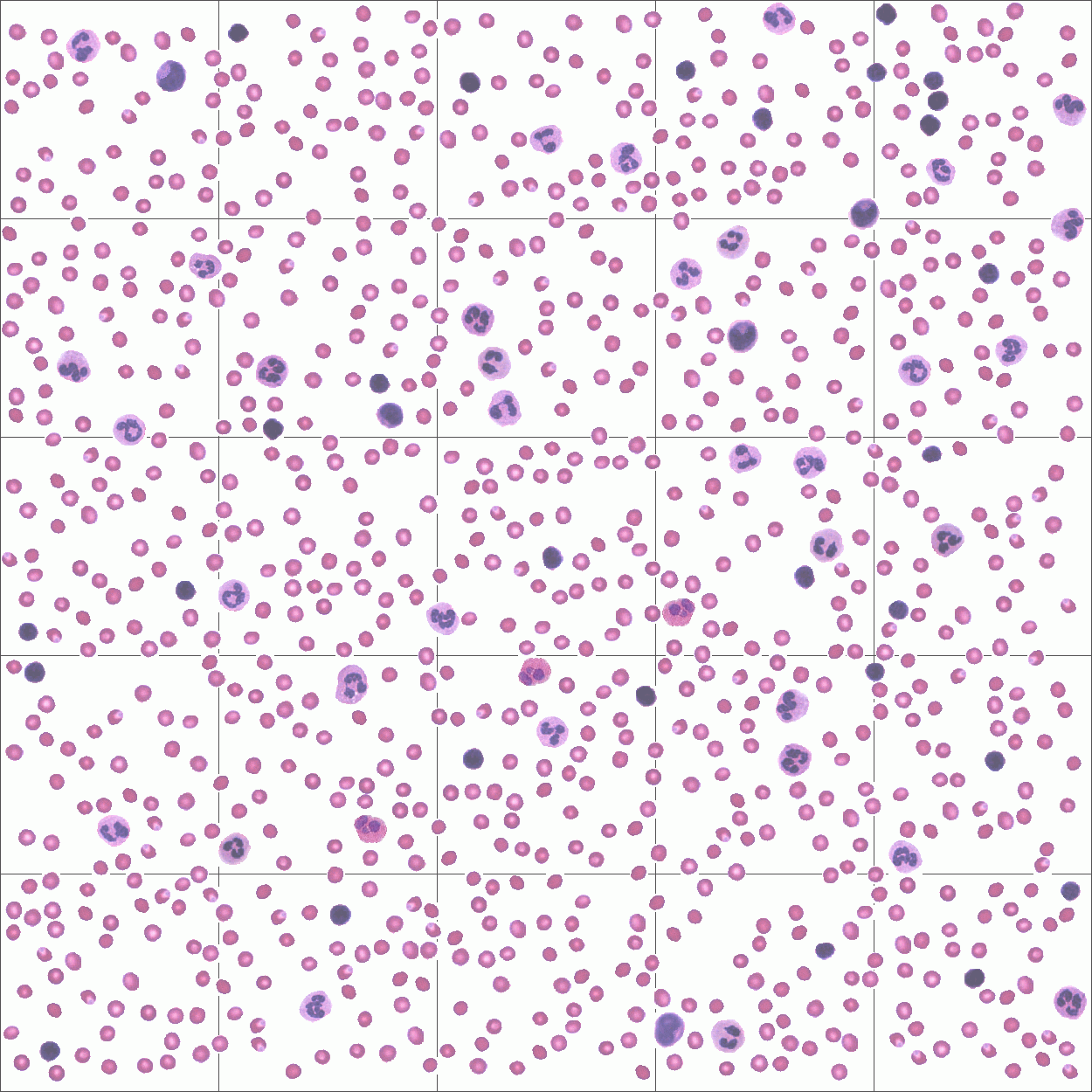 OHARRA: Aurkezten den irudia artifiziala da eta prestatuta dago odol-zelulen kopuruaren alterazioak