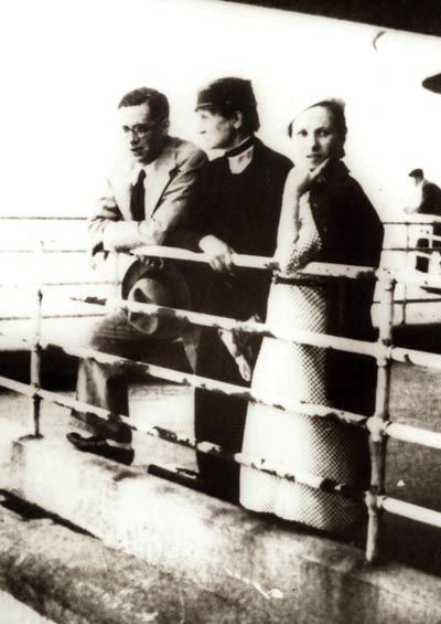 Karlos Santamaria, bere ama Petra Ansa eta bere emazte Blanca Ibarburu, Donibane Lohizunen (1933).