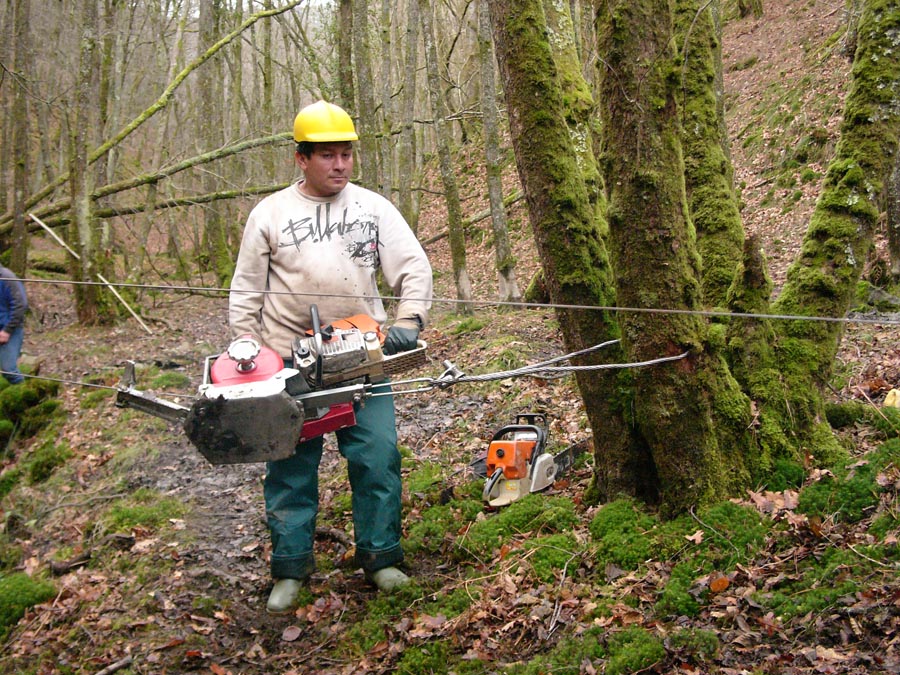 - Vicenc Acuña and Olatz Pereda taking wodden sticks