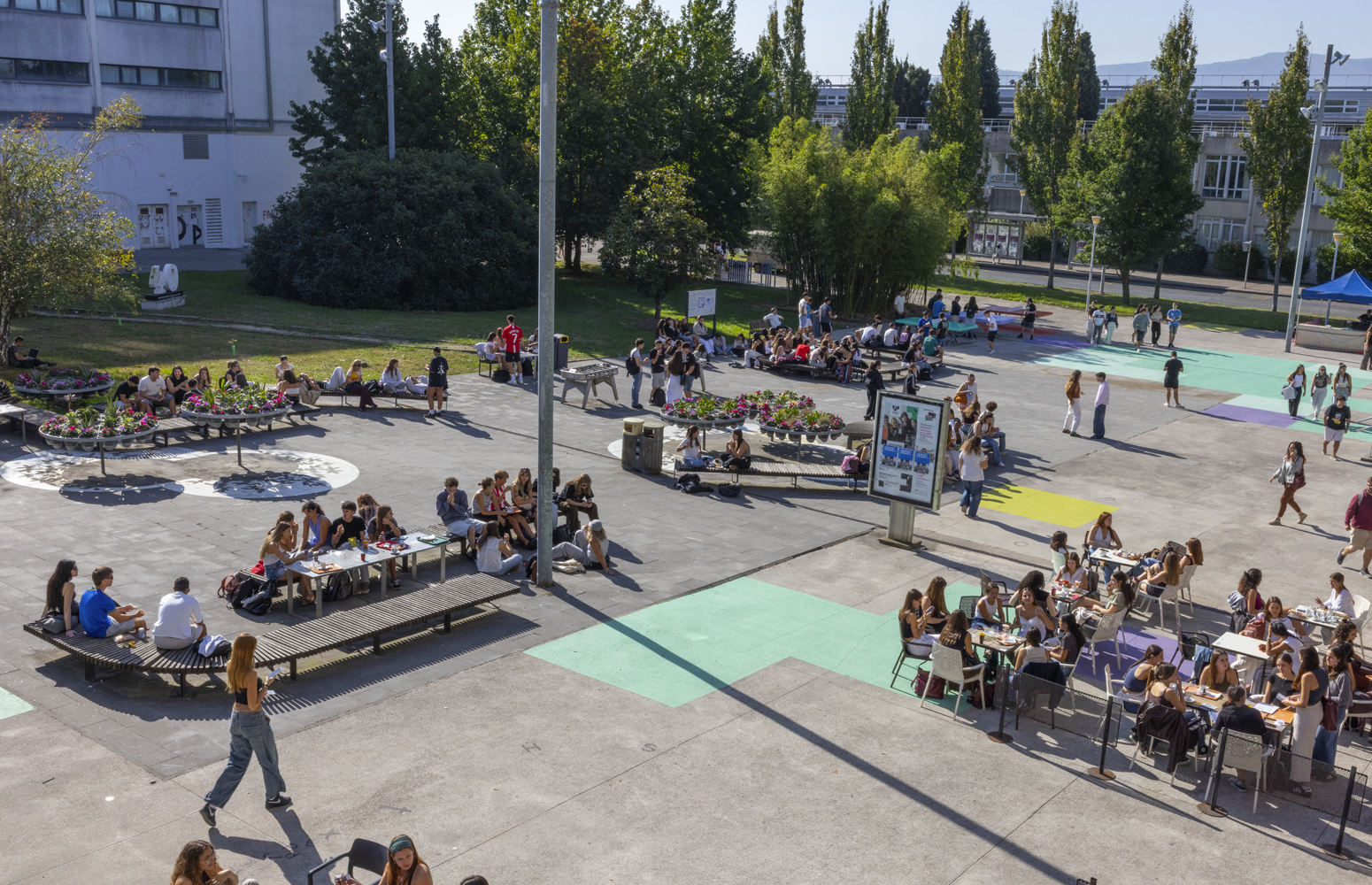 La plaza Mikel Laboa luce nueva imagen. La intervención transformadora, que ha impulsado el Vicerrectorado del Campus de Bizkaia y Comunicación en colaboración con el Equipo Laboa de la Facultad de Bellas Artes, une expresión visual, mejora urbana y participación activa. No se va a quedar solo en lo que ya se ve, sino que seguirá desarrollándose a partir de las ideas, sugerencias y necesidades de las personas que formamos la comunidad universitaria. El proceso participativo ya está abierto. Haz tu propuesta en este formulario: ¿Qué le falta a la plaza Mikel Laboa?