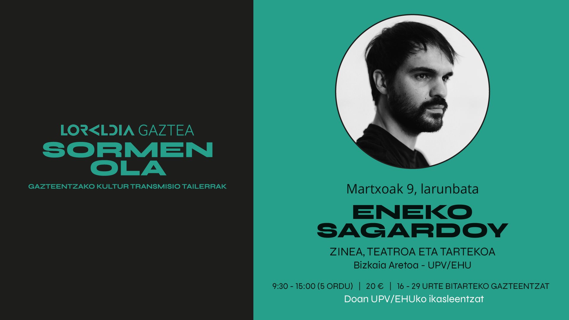 Sormen Ola tailerra: Zinea, teatroa eta tartekoa. Con el actor Eneko Sagardoy.