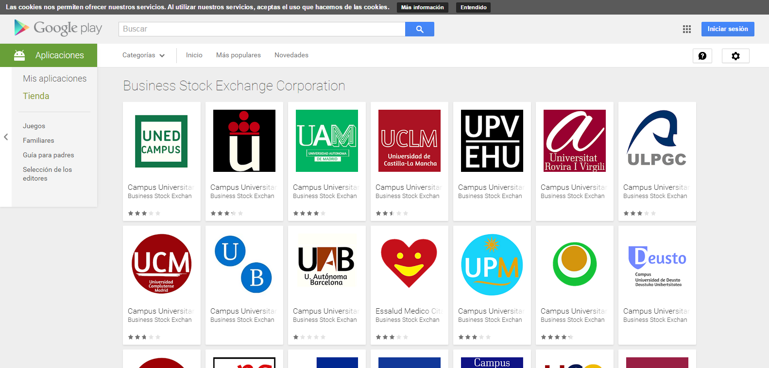 La empresa Business Stock Exchange Corporation ha inundado Google Play de aplicaciones falsas que simulaban ser las oficiales de distintas universidades españolas y que posiblemente tenían código maligno (malware) que sirviera para robar credenciales de acceso a los servicios universitarios.