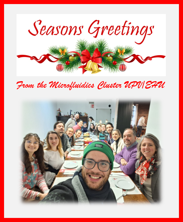 Seasons Greetings!! First publication date: 27/12/2023 Share to Facebook - (Opens New Window) Share to Bluesky - (Opens New Window) Share to Linkedin - (Opens New Window) Share to Whatsapp - (Opens New Window) Share to Telegram - (Opens New Window) Send by email - (Opens New Window) Copy Link - (Opens New Window) All Microfluidics Cluster UPV/EHU members wish you all the best for the New Year 2024!